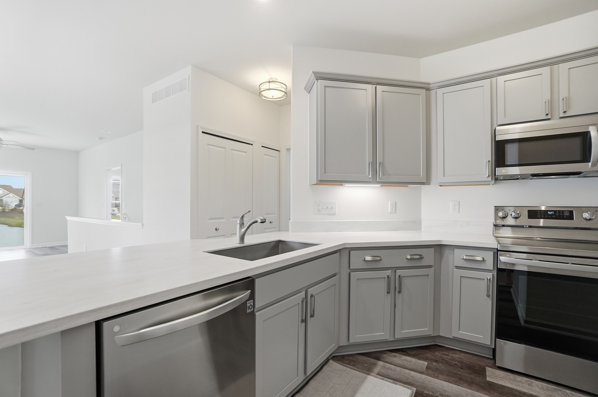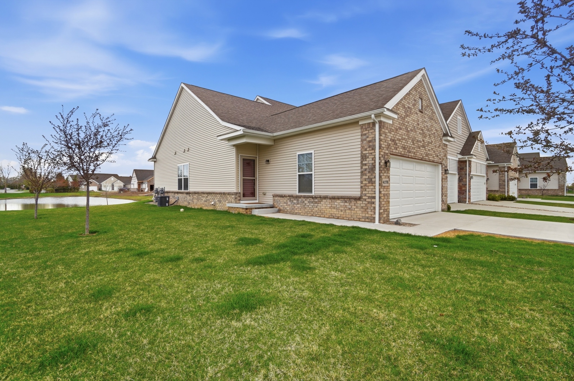 Beautiful 2-bedroom, 2-bath ranch-style end unit condo offering easy, low-maintenance living. Fresh paint throughout and upgraded appliances and countertops give the home a clean, like new updated feel. Spacious primary suite with private bath, attached garage, and a full basement provide plenty of comfort and storage. Enjoy peaceful pond views along with access to the community pool and clubhouse — perfect for relaxing or entertaining.